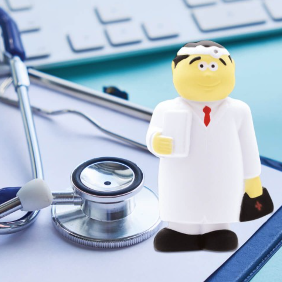 ANTI ESTRÉS DE DOCTOR Figura antiestrés en forma de doctor. Medidas: 6 x 10 x 3 cm. Material: PU