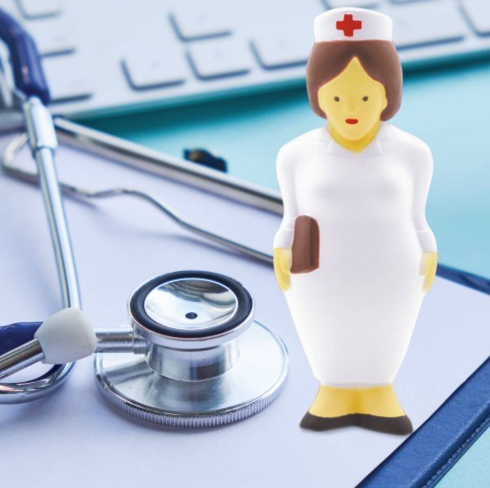 ENFERMERA ANTI ESTRÉS Figura antiestrés en forma de enfermera. Medidas: 3.8 x 10 x 3.2 cm Material: PU