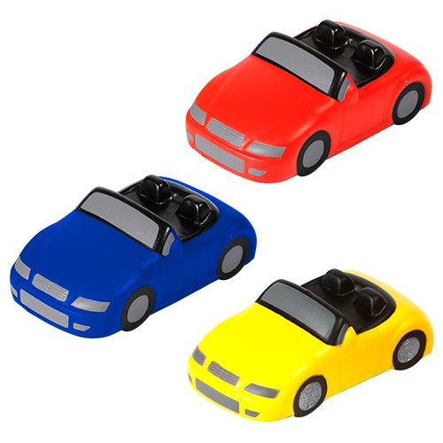 ANTIESTRES EN FORMA DE AUTO En colores azul, amarillo y rojo. Métodos de Impresión: Tampografía.