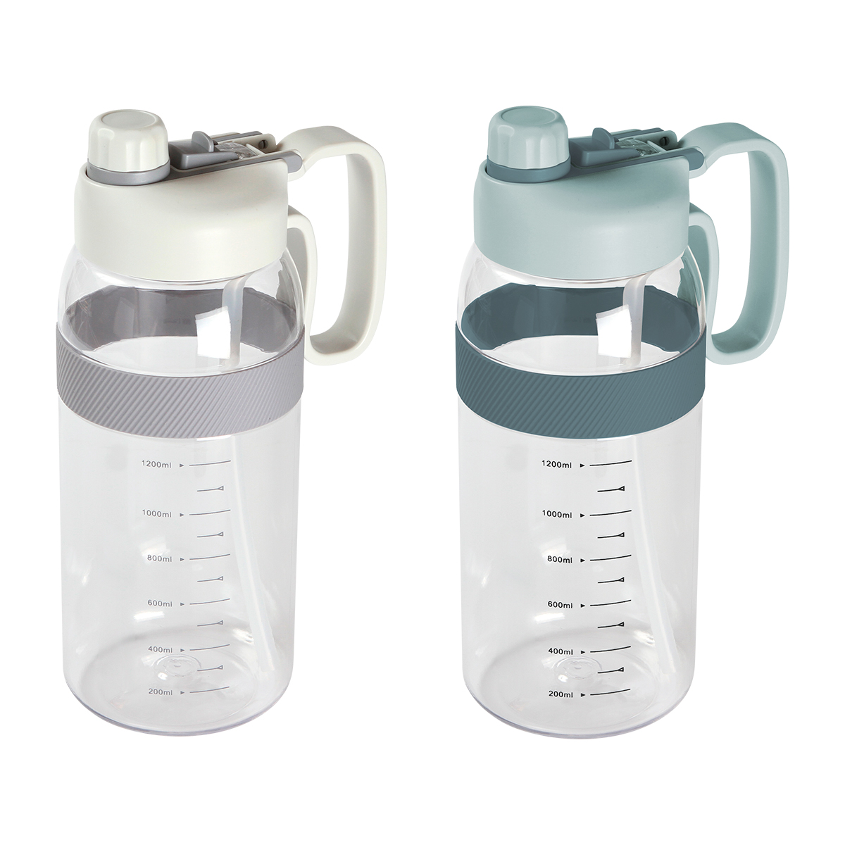 Botella deportiva fabricada en PETG (poliéster de glicol) con asa, popote integrado, tapa de rosca y detalle de silicón. Fabricada en materiales de grado alimenticio, no usar en microondas. Capacidad de 2000 ml. Medidas: 28.6x15.6 cm. Métodos de