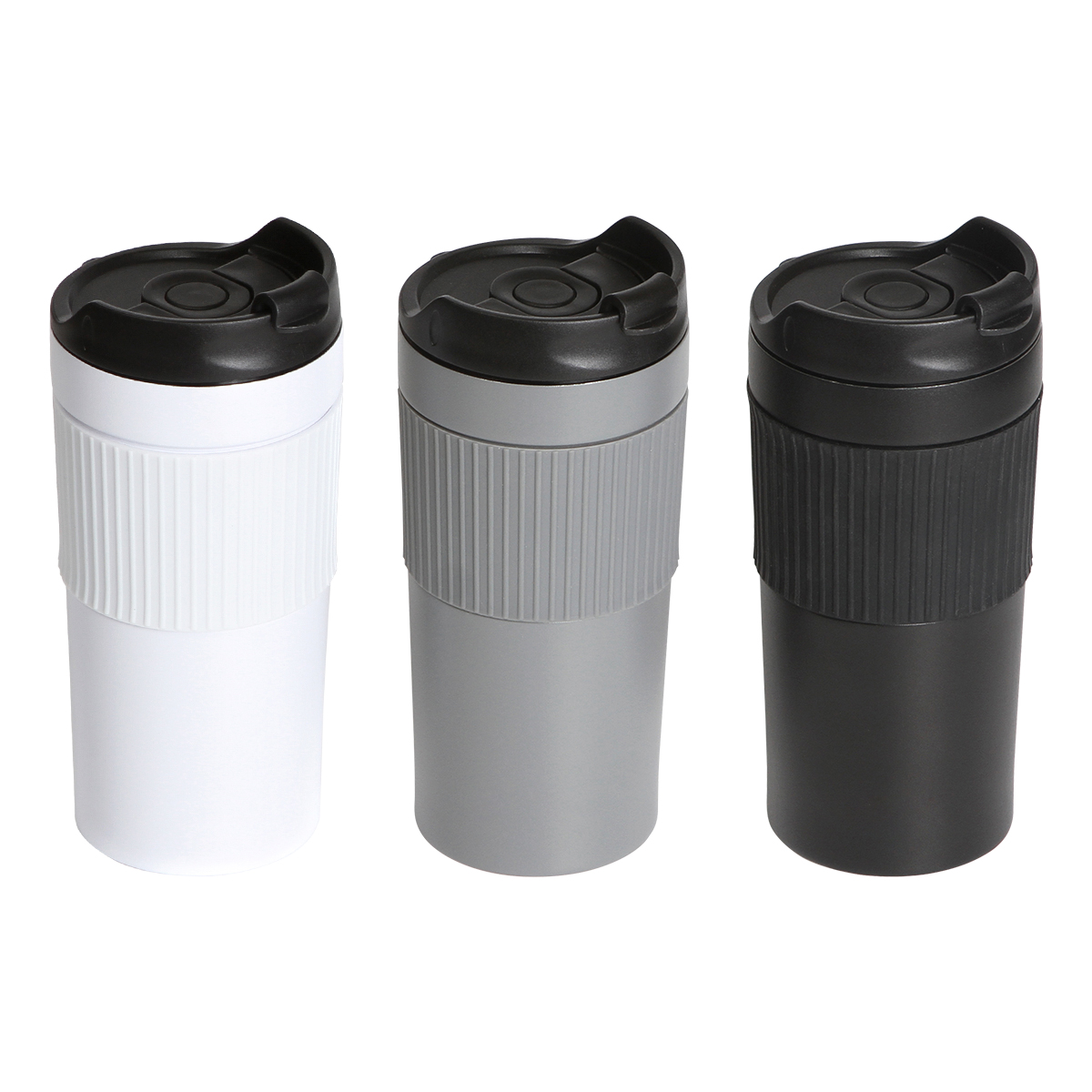 Termo de doble pared de acero inoxidable con manga de silicon, prensa francesa de acero inoxidable, tapa hermética anti derrame con cubierta de seguridad, fabricado en materiales de grado alimenticio, mantiene bebidas calientes por un largo tiempo, no usar en microondas. Capacidad de 480
