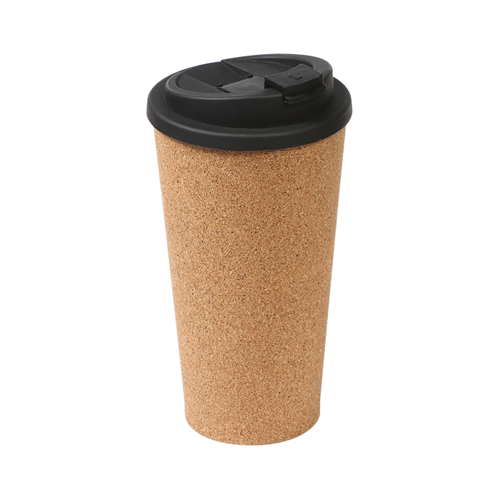 VASO DE CORCHO Vaso de polipropileno con cubierta de corcho y tapa antiderrame, capacidad 450 ml. Medidas: 18.5 x 9.5 cm. Material: corcho