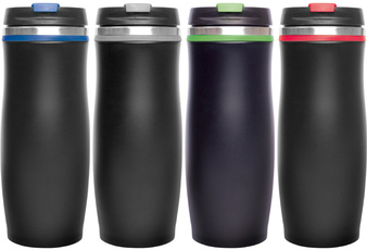 TERMO DE ACERO INOXIDABLE COLORS De doble pared con tapa transparente de plástico. Disponible en colores azul, blanco, negro y rojo. Capacidad: 550 ml. Métodos de Impresión: Grabado Láser y Tampografía.