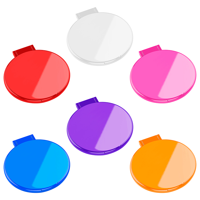 ESPEJOS REDONDOS DE COLORES Espejo redondo de plástico para bolsillo. Medidas: 6.5 x 6 cm. Material: Plástico. Métodos de Impresión: Tampografía y Full Color.