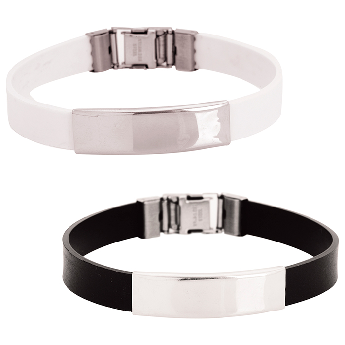 PULSERAS DE ACERO INOXIDABLE Pulsera fabricada en acero inoxidable y silicona. Medidas: 1.2 x 20 cm. Material: Acero inoxidable y silicona. Métodos de Impresión: Grabado Láser.