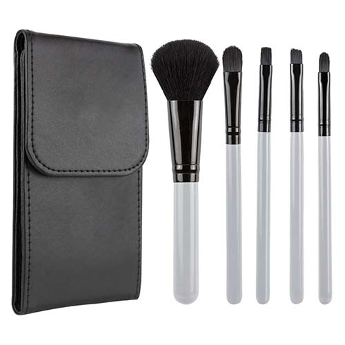 SET DE BROCHAS Set de brochas (Incluye 5 accesorios y espejo.) Medidas: 8.4 x 16 cm. Material: curpiel. Métodos de Impresión: Tampografía y Grabado Láser.