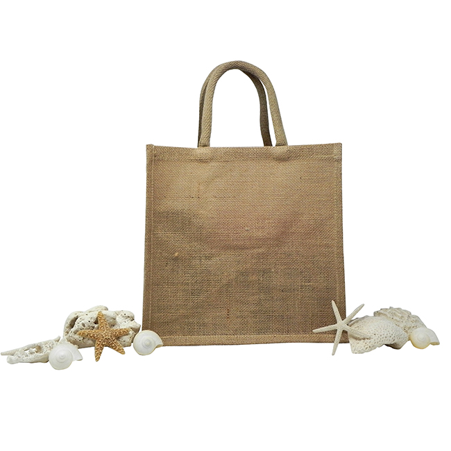 BOLSA BIODEGRADABLE Bolso con fuelle y asa de algodón. Medidas: 30 x 30 x 19 cm. Material: Yute