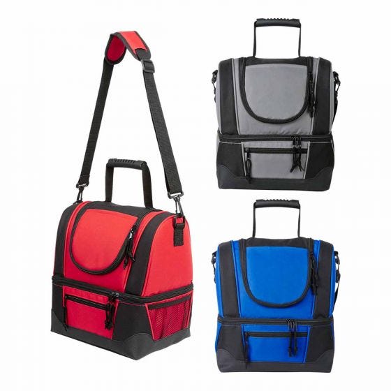 LONCHERA PARA LA PLAYA Interior plastificado impermeable. Bolsa principal, red interna para separar, bolsa frontal con cierre, bolsa lateral de red y correa ajustable. Medidas: 26.5 x 32 x 20 cm. Material: poliéster. Métodos de