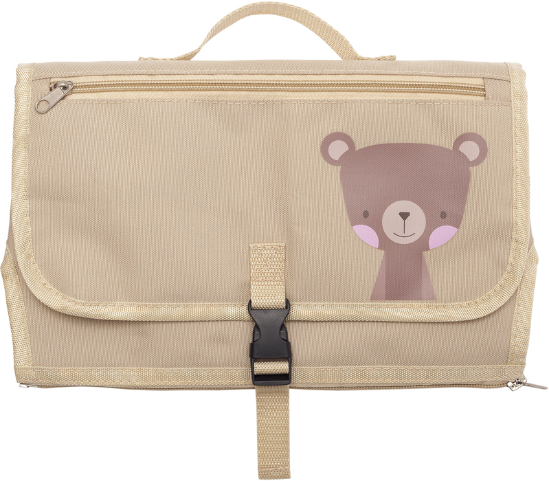 CAMBIADOR PARA BEBÉ Fabricado en polyester. Cambiador para bebes alcolchonado. Bolsillos internos para guardar pañales y toallitas. Un bolsillo externo con cierre. Correa que permite colgarlo en el carro del bebe y bolso materno. Medidas: Abierto
