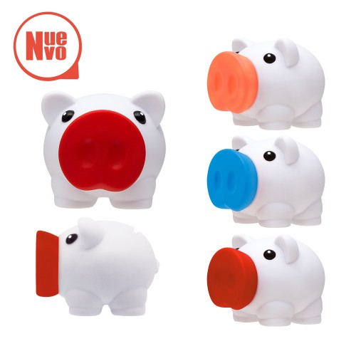 ALCANCÍA DE CERDITO Alcancía de cerdito varios colores para niños. Medidas: 11 x 8.5 x 8 cm. Material: Plástico rígido y silicón flexible. Métodos de impresión: Tampografía.