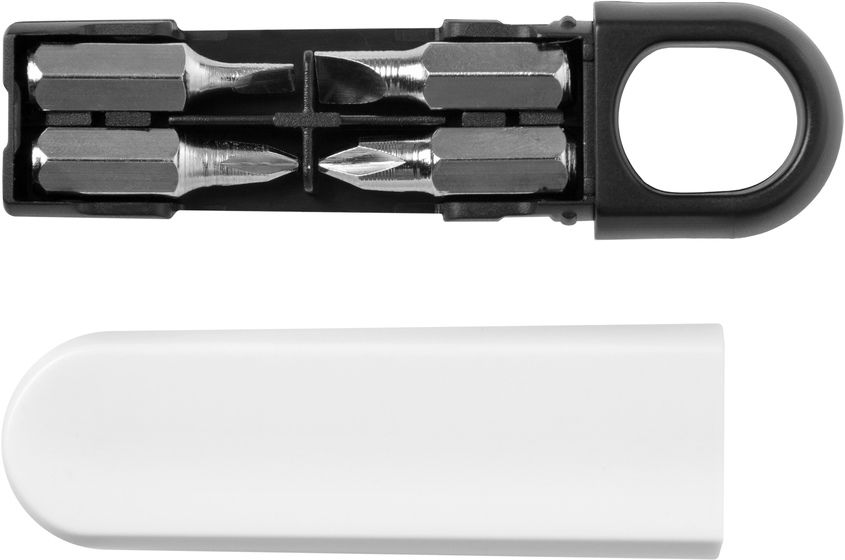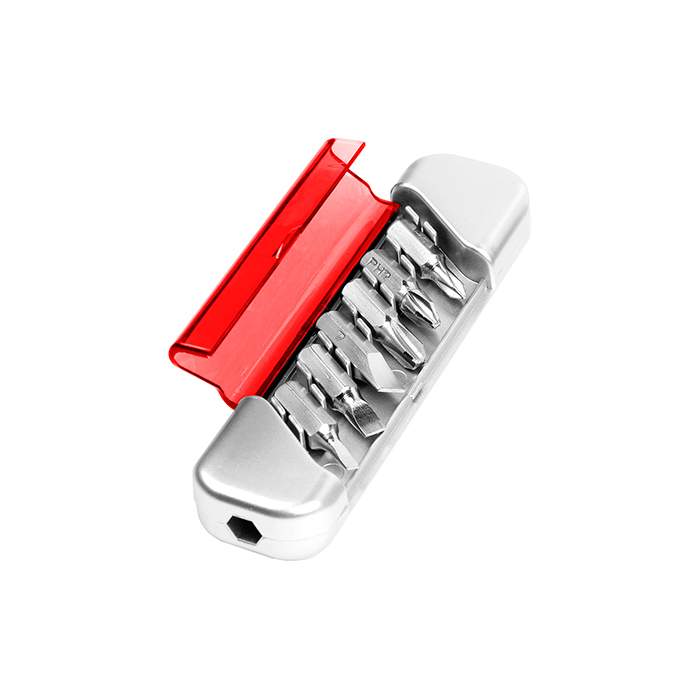 SET DE DESARMADORES Set de desarmadores fabricado en metal con plástico translúcido. Medidas: 11 x 3 Material: metal