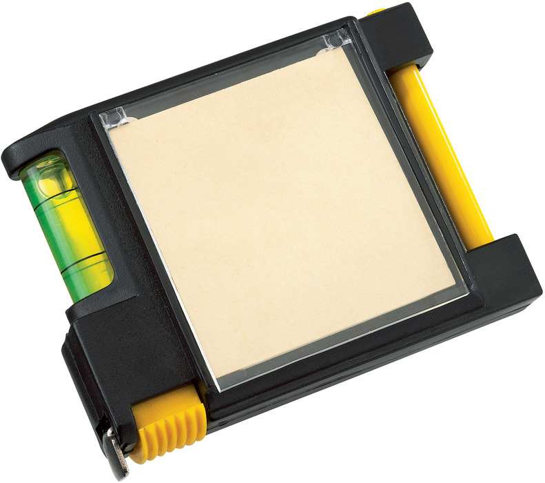 FLEXÓMETRO Flexómetro con nivel, notas adhesivas, bolígrafo y cinta de 2 metros. Medidas: 7.9 x 6 x 2.4 cm Material: Metal. Métodos de Impresión: Grabado Láser y Tampografía.
