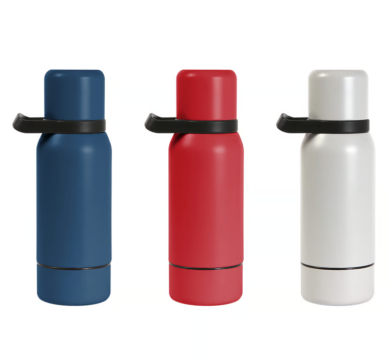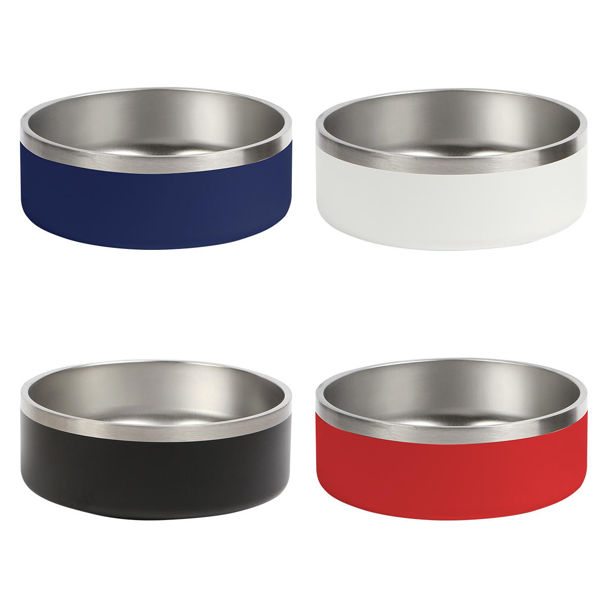 Botella doble pared para mascota fabricada en acero inoxidable 201 y 304. Con base extraíble para servir comida o agua. Incluye caja individual. Medidas: 8.9x25.8 cm.