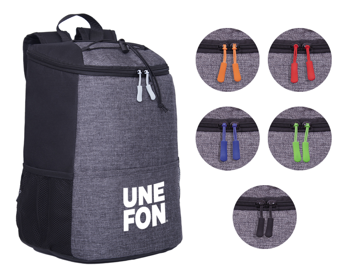 HIELERA TÉRMICA Hielera térmica cuenta con dos compartimentos. Interior plastificado. Dos bolsas laterales de malla. Correas ajustables. Parte inferior de material repelente al agua. Medidas: 30 x 35 x 20 cm. Material: poliéster. Métodos de Impresión: