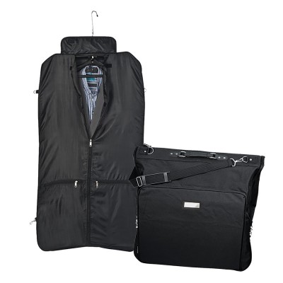 MALETA PORTA TRAJES Maleta portatrajes en resistente poliéster con correas para la espalda, asa de mano, compartimento adicional y placa metálica. Medidas: 60 x 10 x 8 cm. Material: Poliéster. Métodos de Impresión: Vinil textil,
