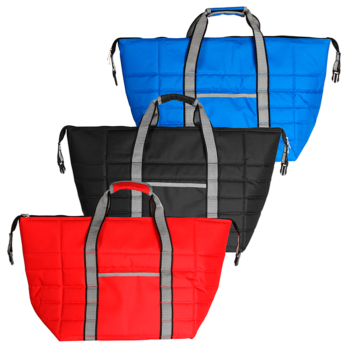 HIELERA DE TRES COLORES Hielera fabricada en poliéster con bolsa exterior y asas, capacidad de 37 litros. Medidas: 37 x 64 cm. Material: Tela. Métodos de Impresión: Serigrafía, Bordado y Vinil Textil.