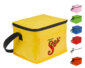 HIELERA PLASTIFICADA Hielera plastificada, antiescurrimiento. CAP: 6 latas. Material: 20.3 x 15 x 15 cm. Medidas: Poliéster. Métodos de Impresión: Serigrafía y Vinil Textil.