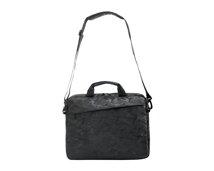 MALETÍN CAMUFLAJEADO Maletín porta laptop de 15.6 pulgadas con dos compartimentos con diseño de camuflaje. Interior acolchado con compartimento para accesorios. Correa larga ajustable y asas. Banda para sujetarse sobre maleta de viaje. Medidas: 31