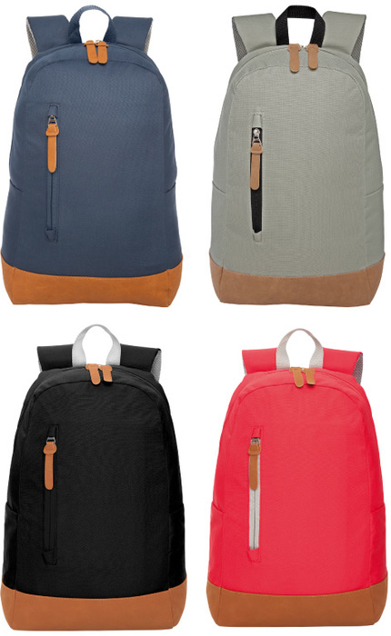 MOCHILA CON DETALLES EN SÍMIL CUERO Capacidad 14 litros. Fabricada en polyester. Mochila con dos compartimentos acolchonados y forrados. Uno de los compartimentos es para portalaptop. Dos bolsillos exteriores con detalles en simil cuero. Correas acolchonados con