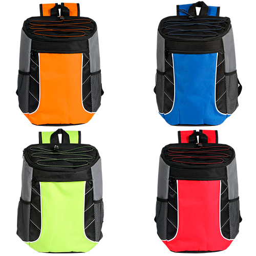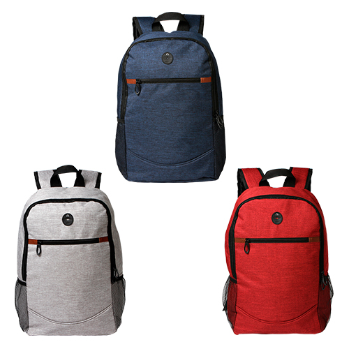MOCHILA CON SALIDA PARA AUDÍFONOS Fabricada en poliéster con cierre horizontal. Disponible en colores azul, rojo y gris. Métodos de Impresión: Serigrafía, Bordado y Vinil Textil.