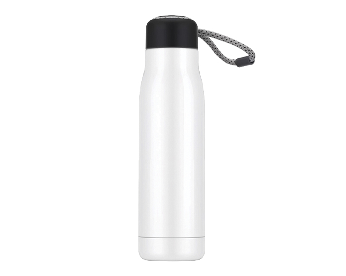 Termo de doble pared para sublimación insulado al alto vacío. Mantiene las bebidas frías por 12 hrs. y calientes por 8 hrs. Tapa de rosca con asa de poliéster para sujetarlo fácilmente. CAP. 500 ml.