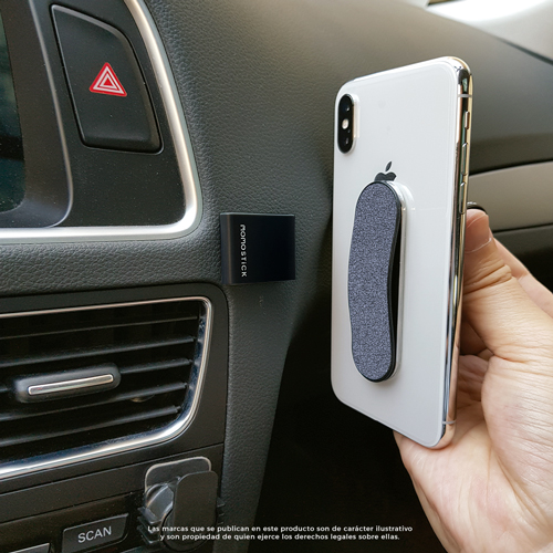 MOMO STICK Momo clip con pegamento 3M doble cara, pega en cualquier superficie plana. Fácil deslizamiento con cualquier dispositivo que cuente con un Momo Stick. Medidas: 3.3 x 2.7 x 0.7 cm. Material: Plástico. Métodos