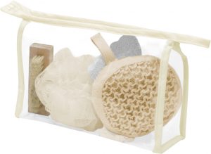 Set con 2 esponjas una es exfoliante, piedra/lima y cepillo de uñas.