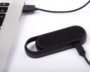 BOCINA CON MANOS LIBRES Y CLIP CON GANCHO PARA TRANSPORTAR
