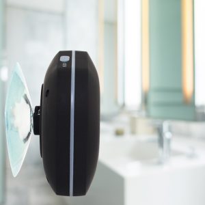 Bocina bluetooth fabricada en plástico con acabado en rubber, resistente al agua con función de manos libres. incluye cable para recargar.