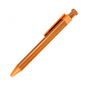 Bolígrafo ecológico de bamboo con punta y clip de plástico.