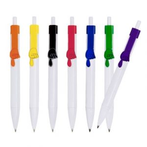 Bolígrafo plástico y clip en forma de dedo apuntador en gran variedad de colores.