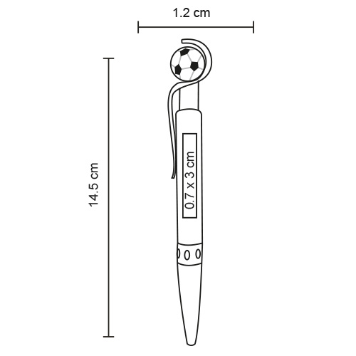 Bolígrafo plástico con clip que funciona como mecanismo de click y balón spinner en la parte superior como accesorio anti-estrés.