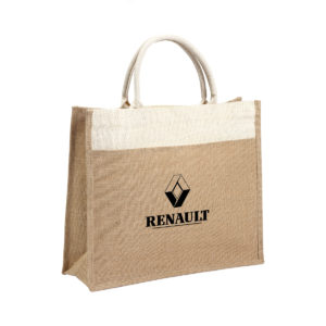 Bolsa fabricada en yute, material natural y resistente que le confiere un aspecto rústico y elegante, con asas cómodas que están fabricadas en algodón, con un compartimiento en la parte frontal, para tener los objetos mas pequeños a la mano, con un diseño bi-tono, lo que significa que combina dos tonos complementarios en su diseño.