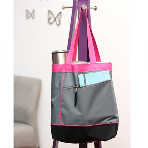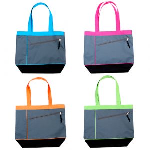 Con cierre al frente, fabricada en poliéster. Disponible en colores rosa, azul, naranja y verde.