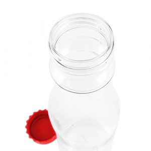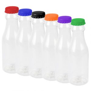 De plástico tritán transparente con tapa de colores azul, negro, rojo, naranja, morado y verde.