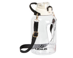 Botella jumbo de plástico transparente con capacidad de 1.4 litros (48 oz) , tapa de seguridad y correa de color con arnés. Esta botella de plástico transparente te permite llevar contigo la cantidad perfecta de líquido para mantenerte hidratado, su tapa en rosca es ideal para mantener seguro el liquido de la botella, y su correa de color con arnés desmontable se puede ajutar a tu gusto para llevarla al hombro, cruzada en el cuerpo o removerla.