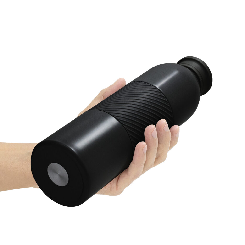 Ø 7 cm x 26,5 cm. Capacidad 600 ml. Acero inoxidable. Botella doble pared, sellada al vacío. Interior en acero 304 y exterior en acero 201. Grip de silicona texturado para mejor agarre. Pintura acabado mate. Tapa de polipropileno y acero inoxidable 201. Presentación en caja de regalo kraft.