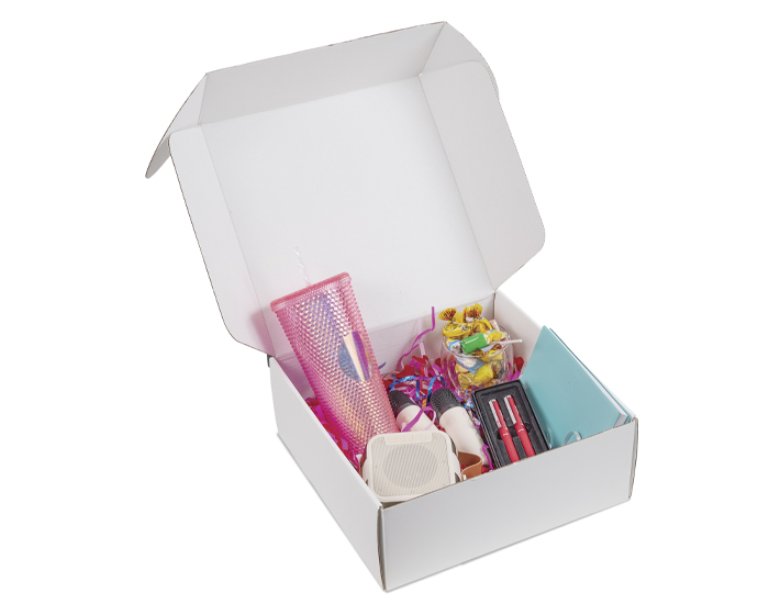 Caja de cartón mate, ideal para regalos y kits promocionales. Se entrega desarmada. Venta en múltiplos de 10.