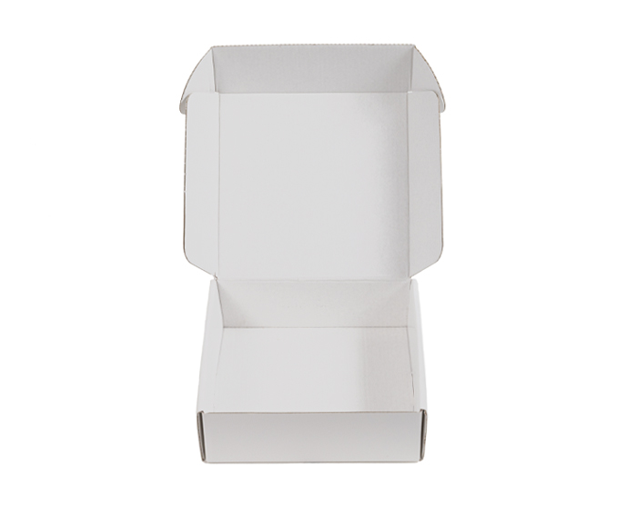 Caja de cartón blanco mate, ideal para regalos y kits promocionales. Se entrega desarmada. Venta en múltiplos de 10.