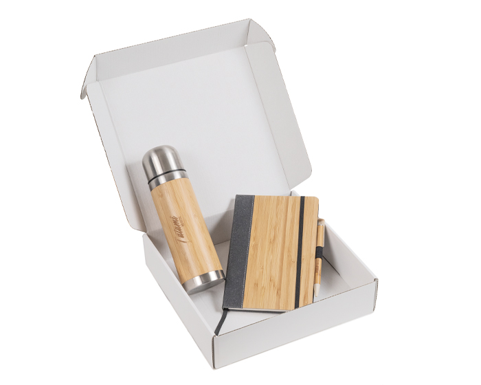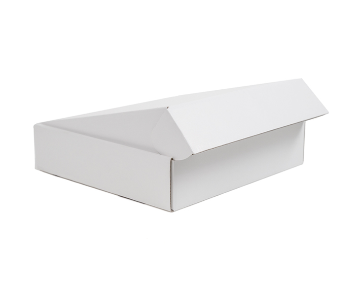 Caja de cartón blanco mate, ideal para regalos y kits promocionales. Se entrega desarmada. Venta en múltiplos de 10.