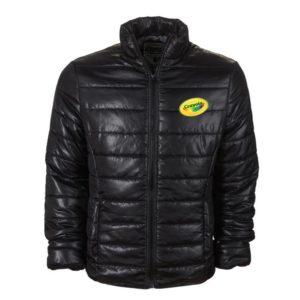 Chamarras capitonadas en color negro con logo bordado, hechas a la medida.