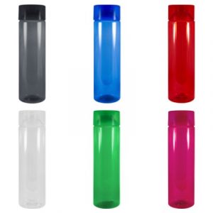 Cilindro de plástico PET con tapa anti derrames y capacidad de 750 ml.