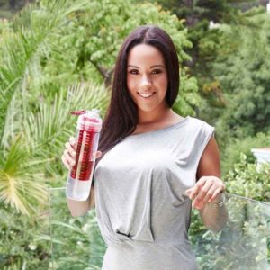 Cilindro con infusionador para frutas o bolsas de té. Tapa con sistema de rosca.