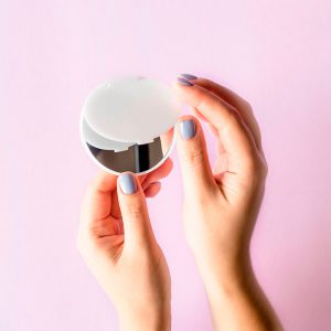 Espejo redondo de plástico para bolsillo.