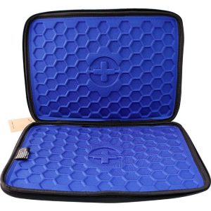 Funda semi rígida de neopreno para Laptop de 14” Cuenta con placa metálica negra de 7.7 x 2.8 cm para grabado láser. Cierre que permite gran apertura. Tira Cierre con marca presente. Novedoso diseño exterior en color negro. Full padding para máxima protección del equipo. Disponible con interior rojo, azul, y negro.