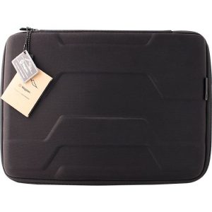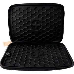 Funda semi rígida de neopreno para Laptop de 14” Cuenta con placa metálica negra de 7.7 x 2.8 cm para grabado láser. Cierre que permite gran apertura. Tira Cierre con marca presente. Novedoso diseño exterior en color negro. Full padding para máxima protección del equipo. Disponible con interior rojo, azul, y negro.