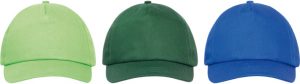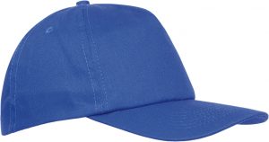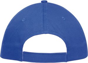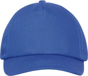 5 paneles con parte frontal reforzada, 2 ojales bordados, botón y cierre ajustable de velcro.
