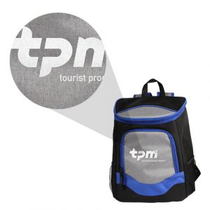 Tipo back pack bi-tono. Fabricada en poliéster. Disponible en colores azul, naranja, rojo y verde.