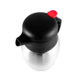 Jarra térmica fabricada en acero inoxidable con tapa dosificadora antiderrame, capacidad de 1,200 ml.