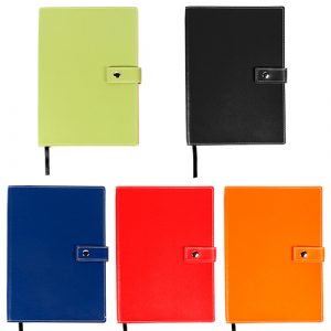 Con 80 hojas de raya, medida A5 (14.8 x 21 cm). Listón separador de hojas, fabricada en poliuretano. Disponible en colores azul, rojo, negro, verde y naranja.